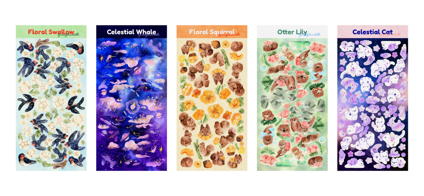 Version 4: Swallow, Celestial Whale, Squirrel, Otter & White Cat